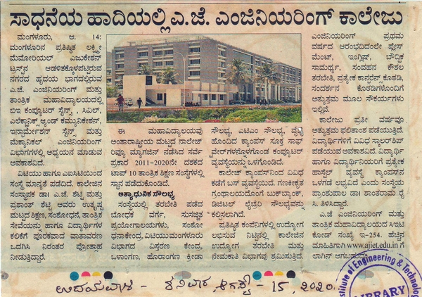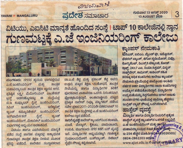 AJIET is in TOP 10 CollegesVijayavani:13 August 2020