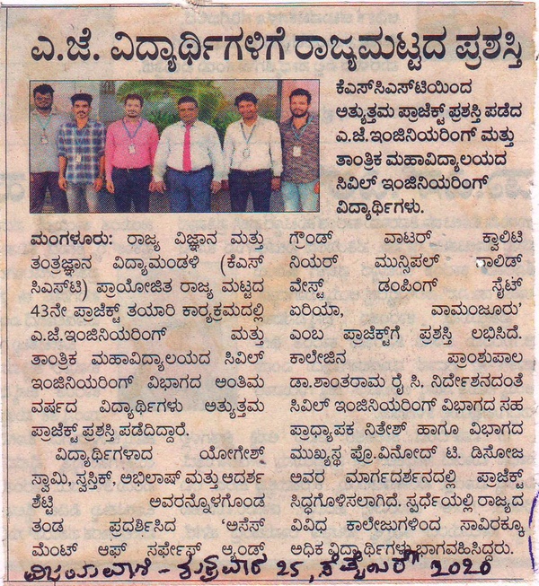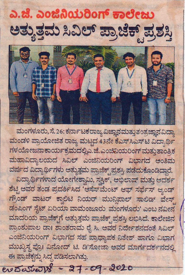 Civil Project winnersUdayavani:27 September 2020