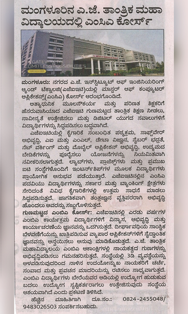 MCA CourseVijayakarnataka: 22 Jan 2025