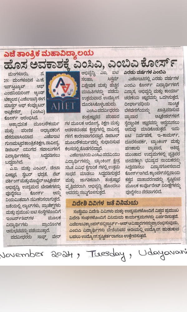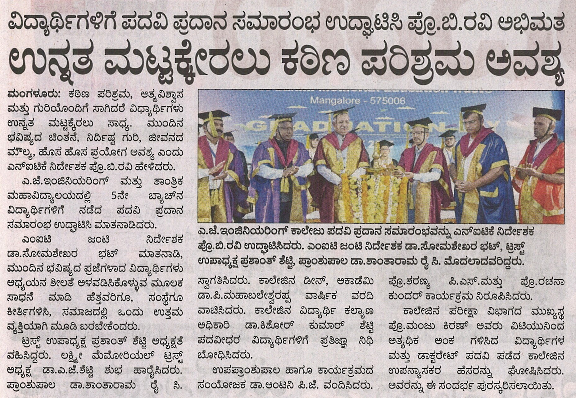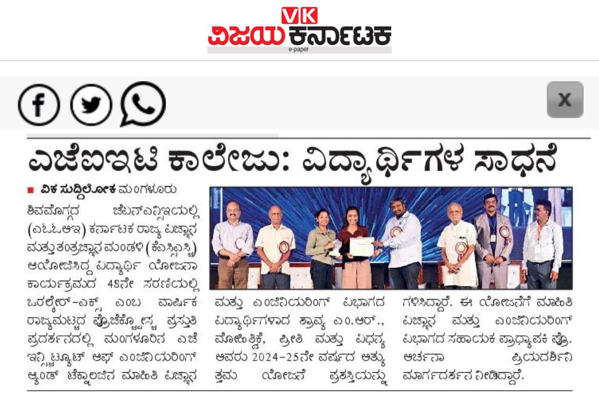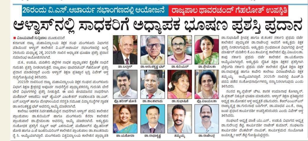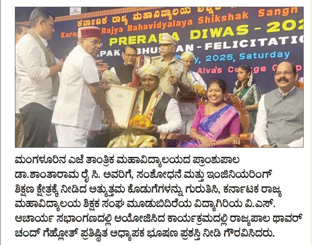 AJIET Principal AchievementVijayavani: 24 July 2025