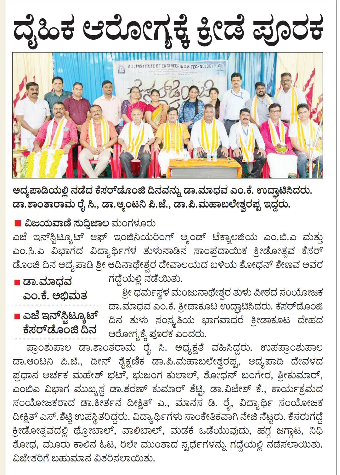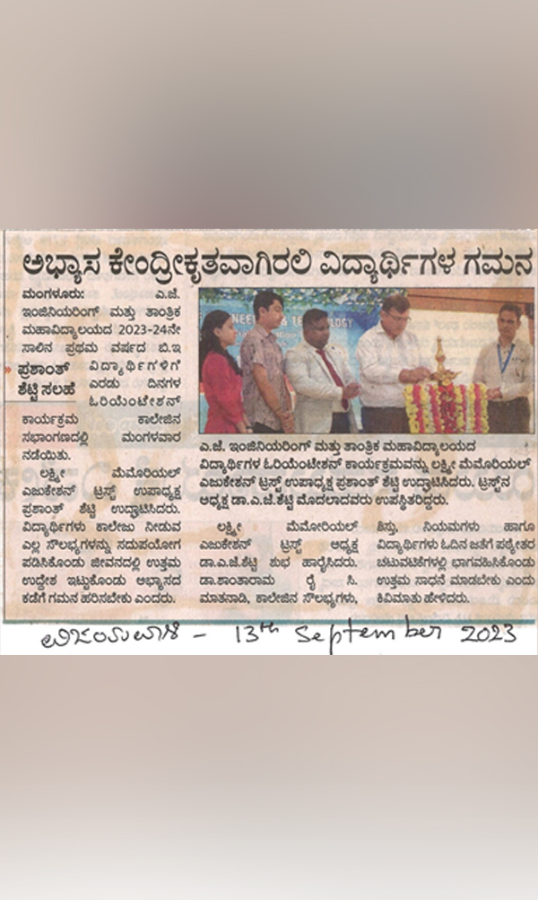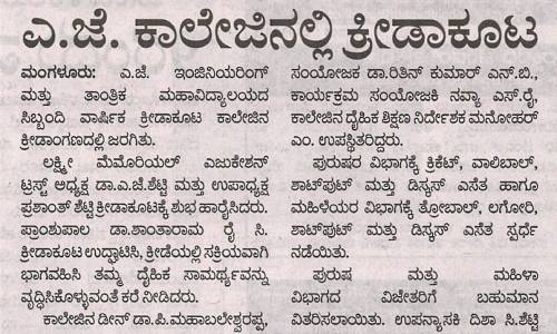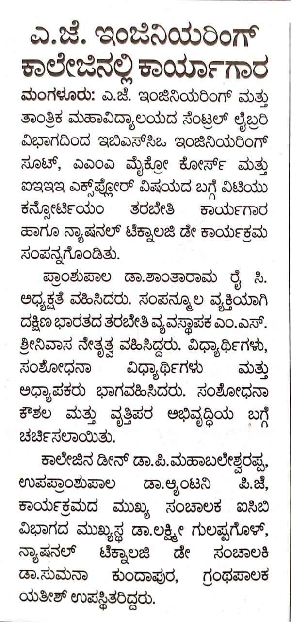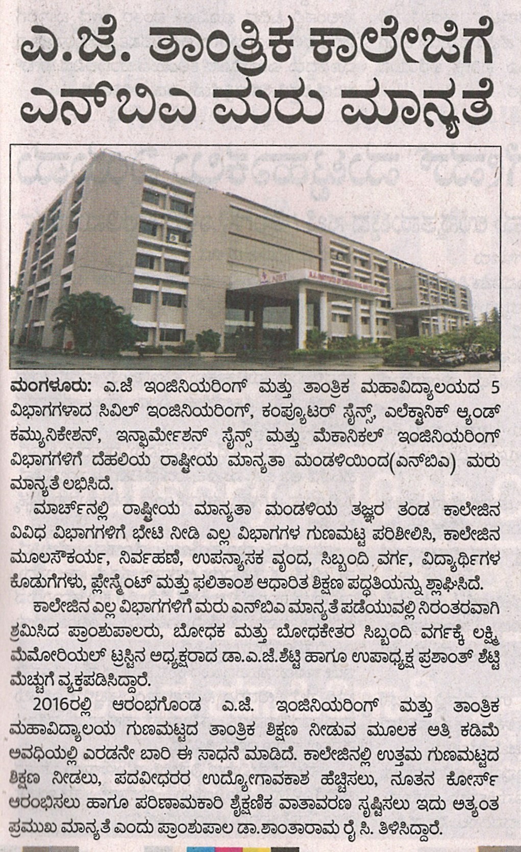 AJIET Principal AchievementVijayavani: 24 July 2025