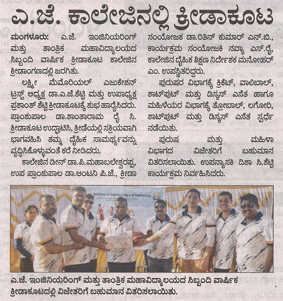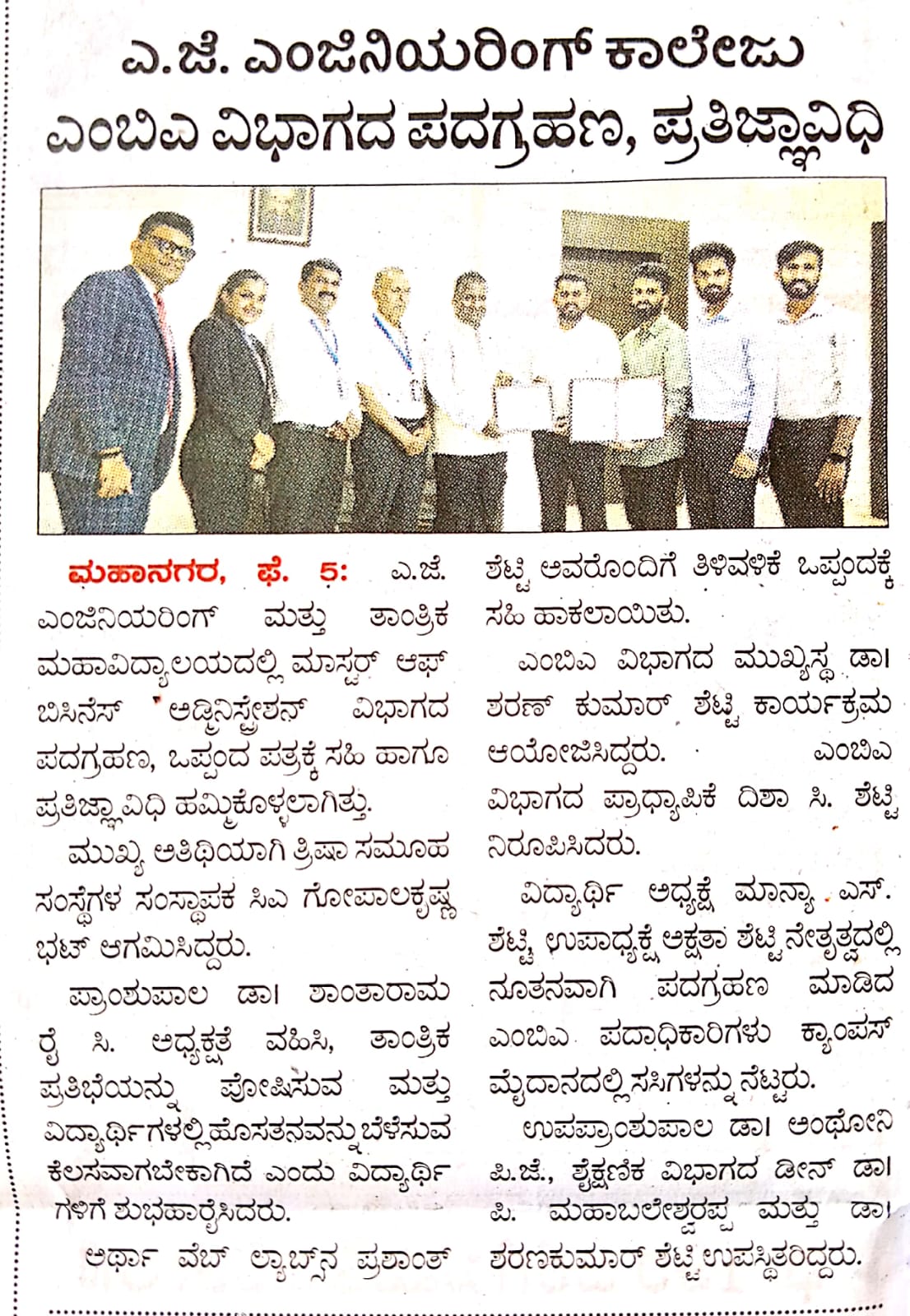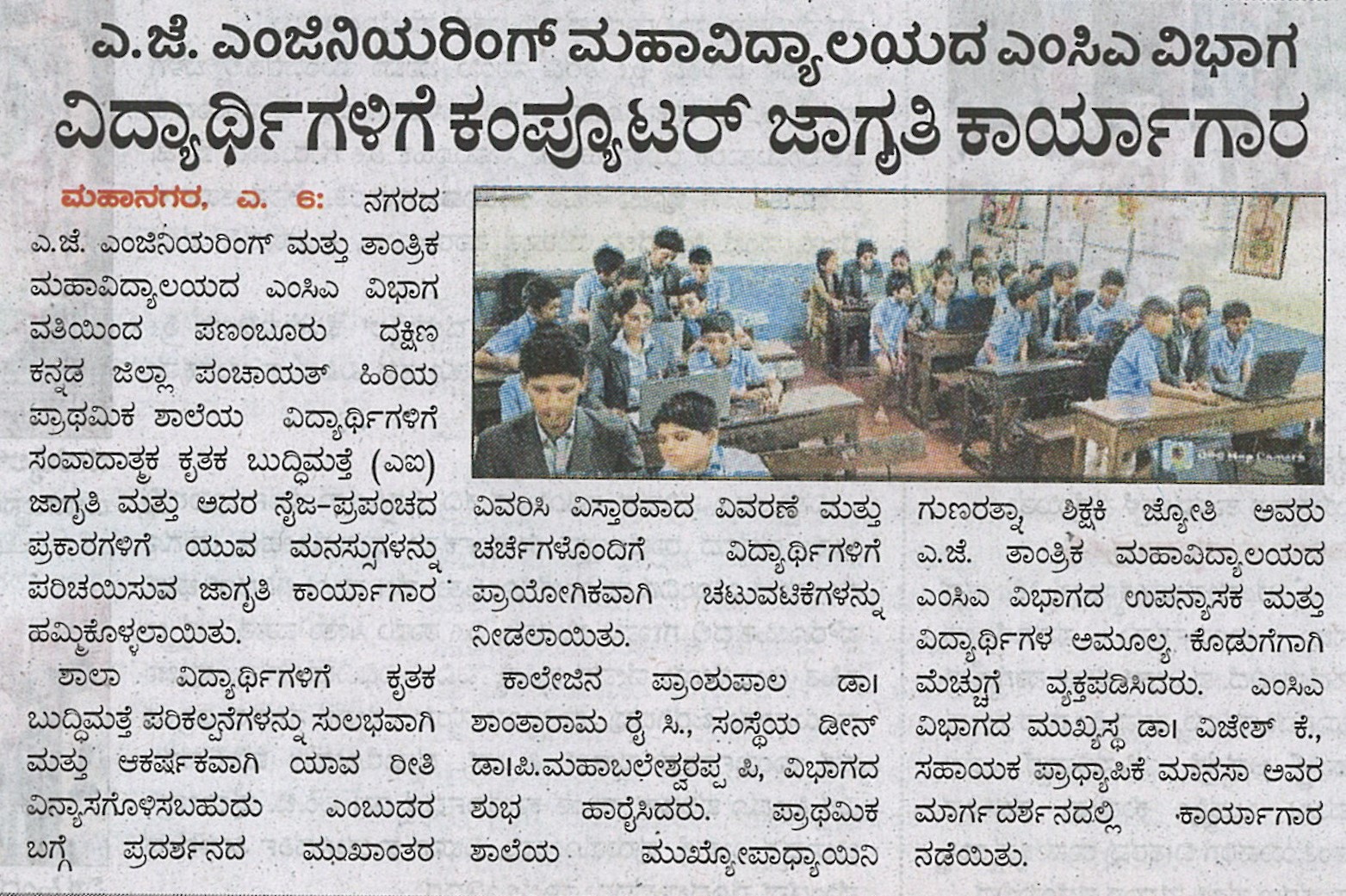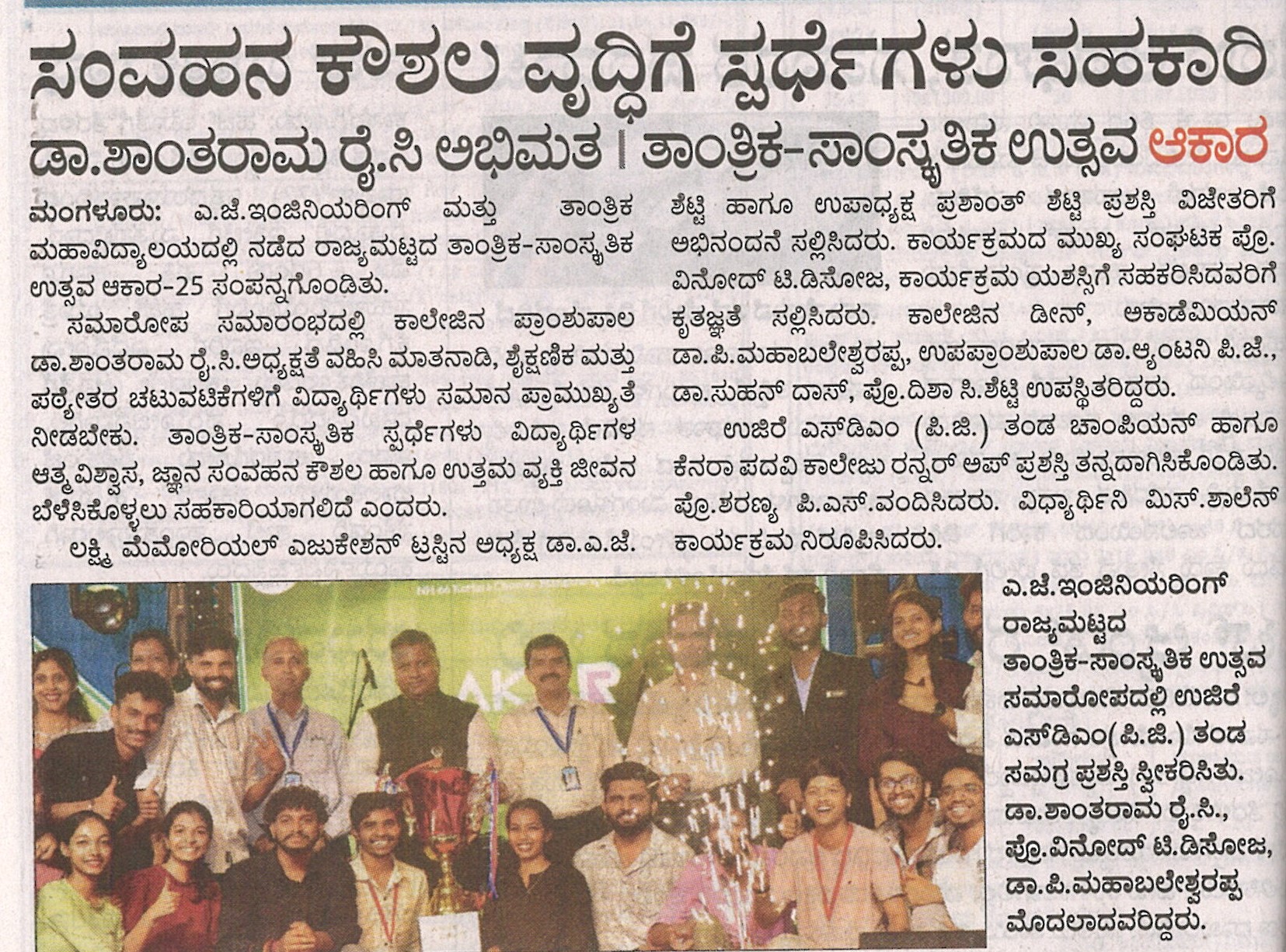 AJIET Principal AchievementVijayavani: 24 July 2025