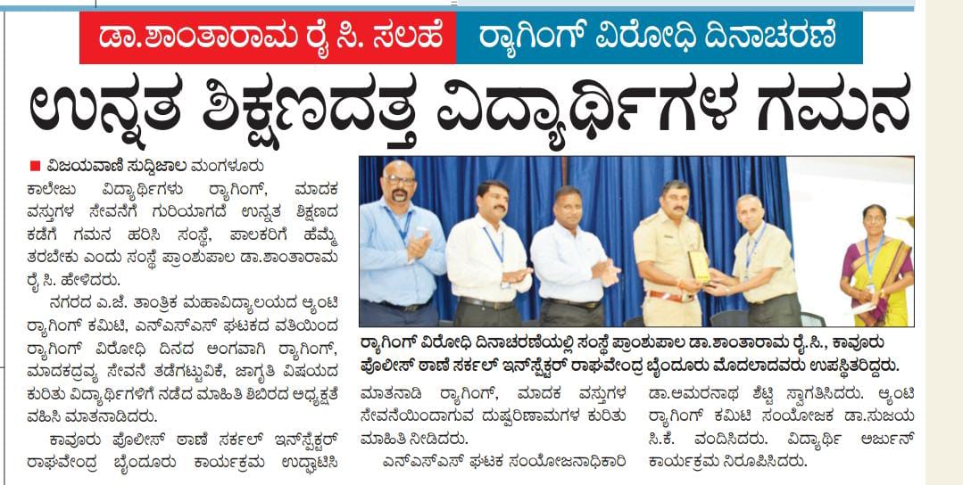Anti Ragging and Drug Awareness ProgramVijayavani: 19 August 2025