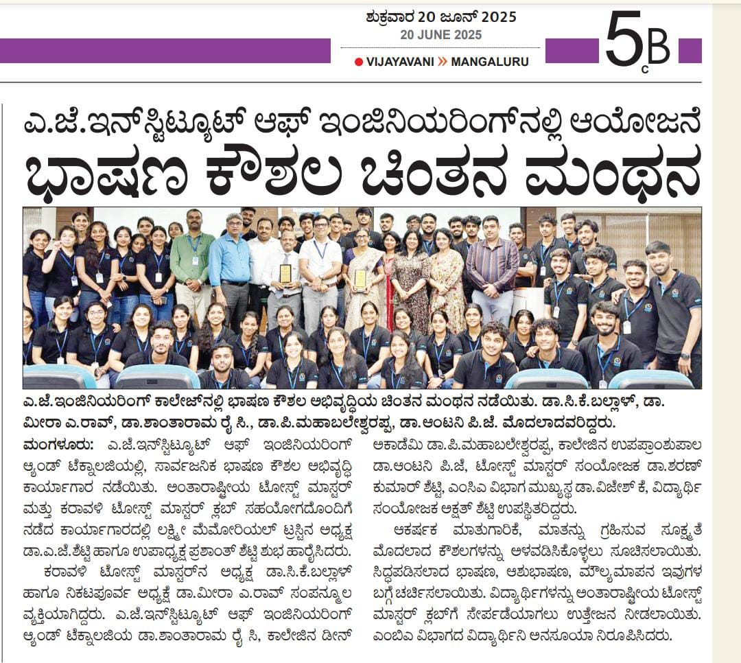 MBA - Tostmaster ProgramVijayavani: 20 June 2025