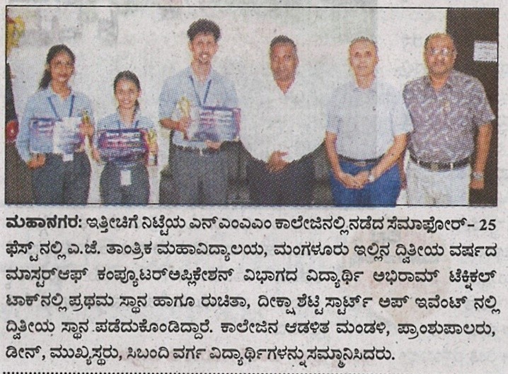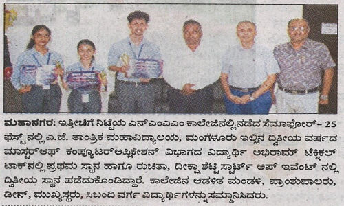 MCA Students AchievementUdayavani: 14 October 2025