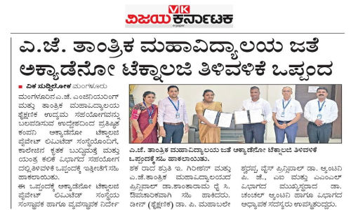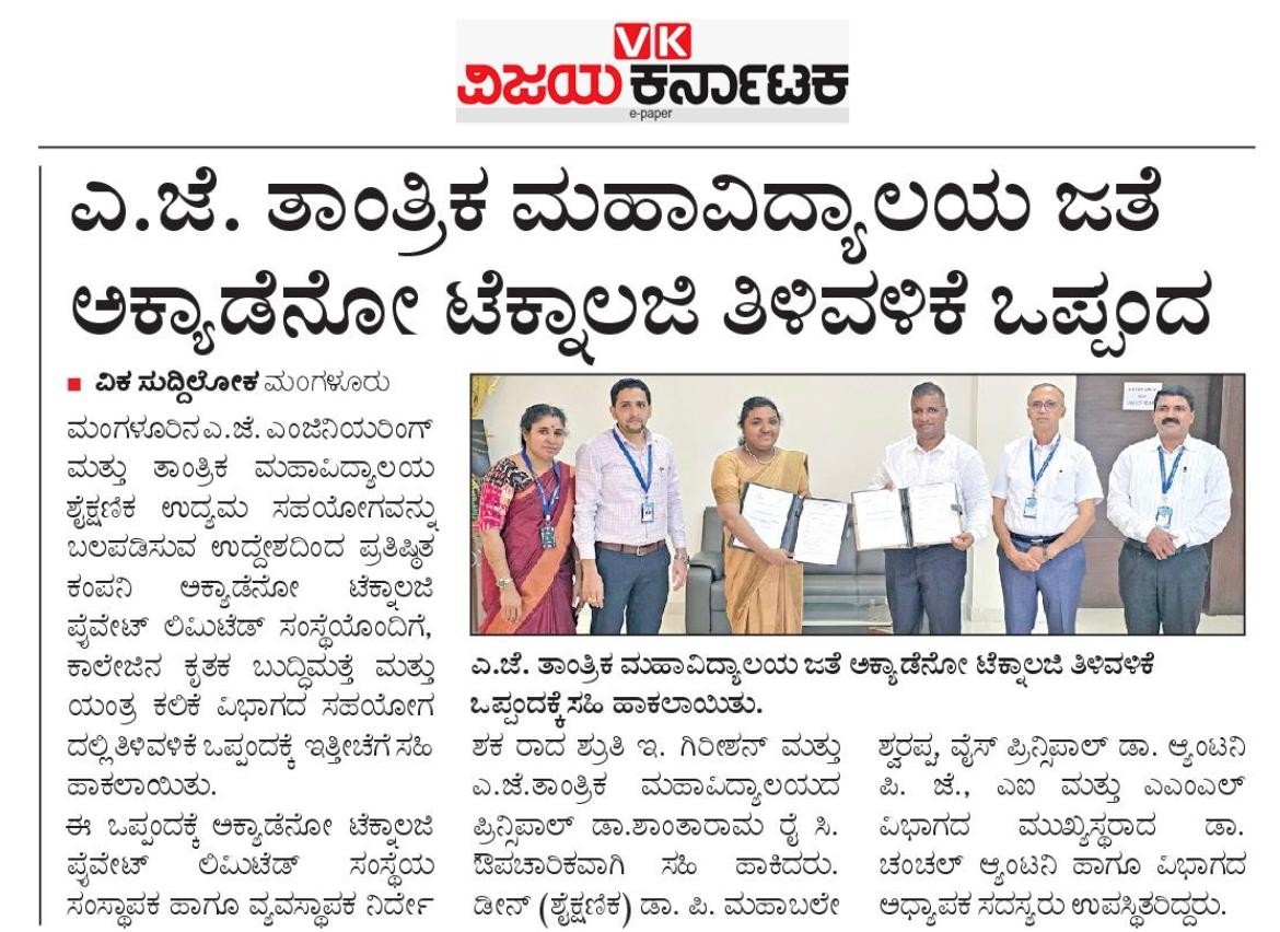 MOU AJIET AIML Department with Acadeno Technology Pvt. LtdVijaya Karnataka: 31 October 2025