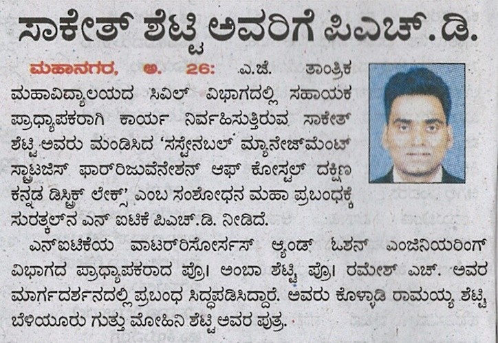 Mr. Saketh Shetty PhD AwardUdayavani: 27 October 2025