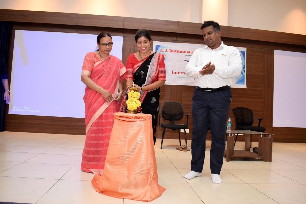 The Women’s Welfare Committee of A J Institute of Engineering and Technology has organized a special program to celebrate the International women’s day on 8th March 2017, in the college seminar hall at 3pm. Program began with the welcome dance, performed by Ms. Prashanthi Shetty. Dr. Shantharam Rai, Principal of AJIET welcomed the gathering. Ms. Adhya Rai introduced the guest to the audience. Dr. Ashajyothi Rai, Director of “Aasare Charitable Trust”, was the chief guest of the function. She addressed the students and faculty members with her enriching thought provoking wordings. She mainly highlighted on issues related to women and their impact on the society. The chairman of Women’s Welfare committee Dr.Shanthakumari.K, Department of Mathematics proposed vote of thanks and Ms. Zuha Waseem was the master of ceremony.