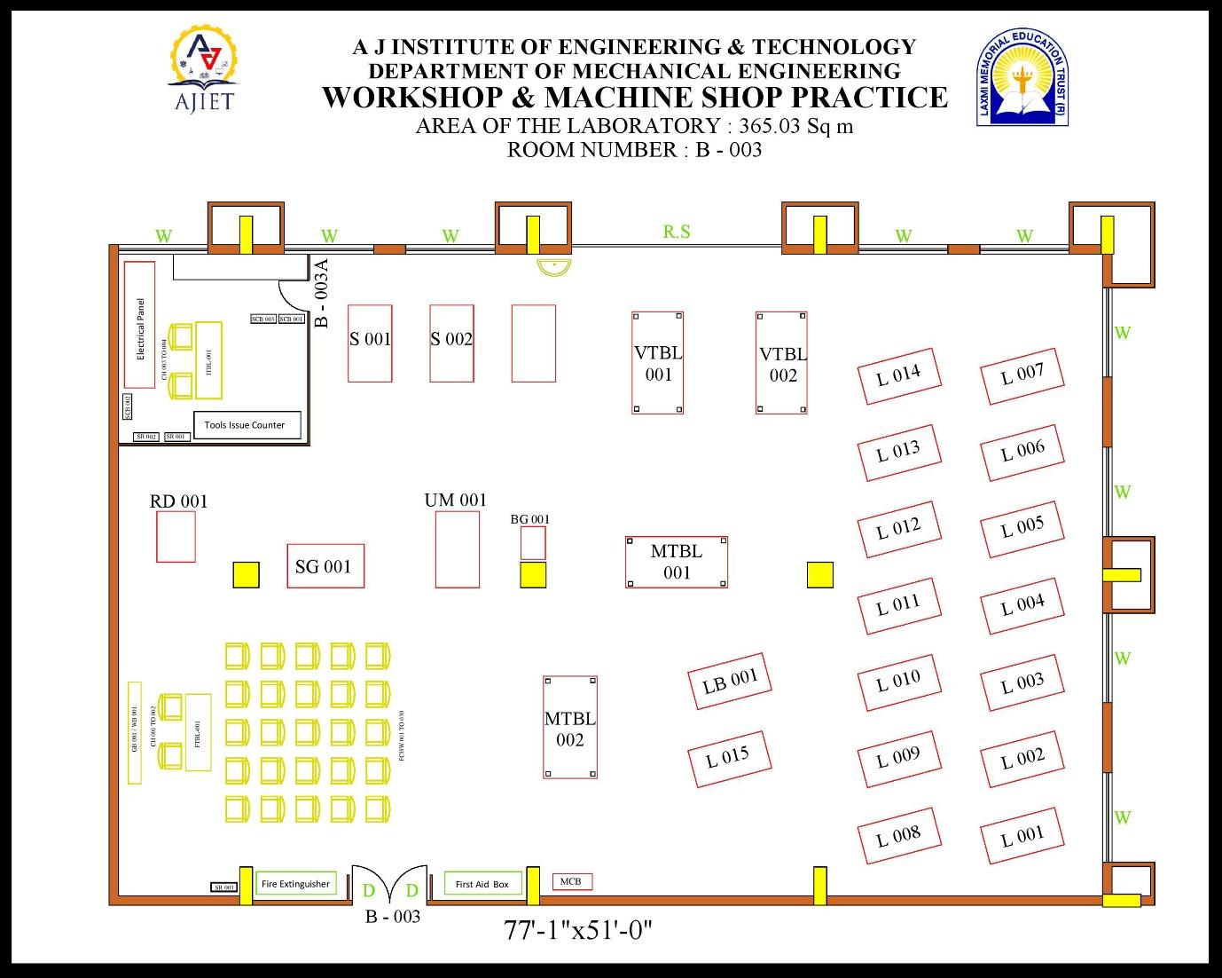 A Machine shop is both an engineer's laboratory and an artist's studio.In Workshop and Machine shop lab, students will work on various machines to create a model of specific dimension and shape. The various machines the students will work on are Lathe, Milling machine, Shaping machine, Grinding machine and Drilling machine. Apart from these machines, students will also use hand tools to create fitting models using files, hacksaw blade, punch etc. The secret to a machine shop is that all of the tools operate on the same principles. A machine may have straight or rotating blades, a flat-edged or angled cutting tool, a moving tool or a moving workpiece. By understanding first the basic concepts of the machine shop, you can figure out how to use a machine that might not be as familiar, or even create your own tools to solve a special machining problem. Lab is provided with proper ventilation, space and sufficient lighting.
