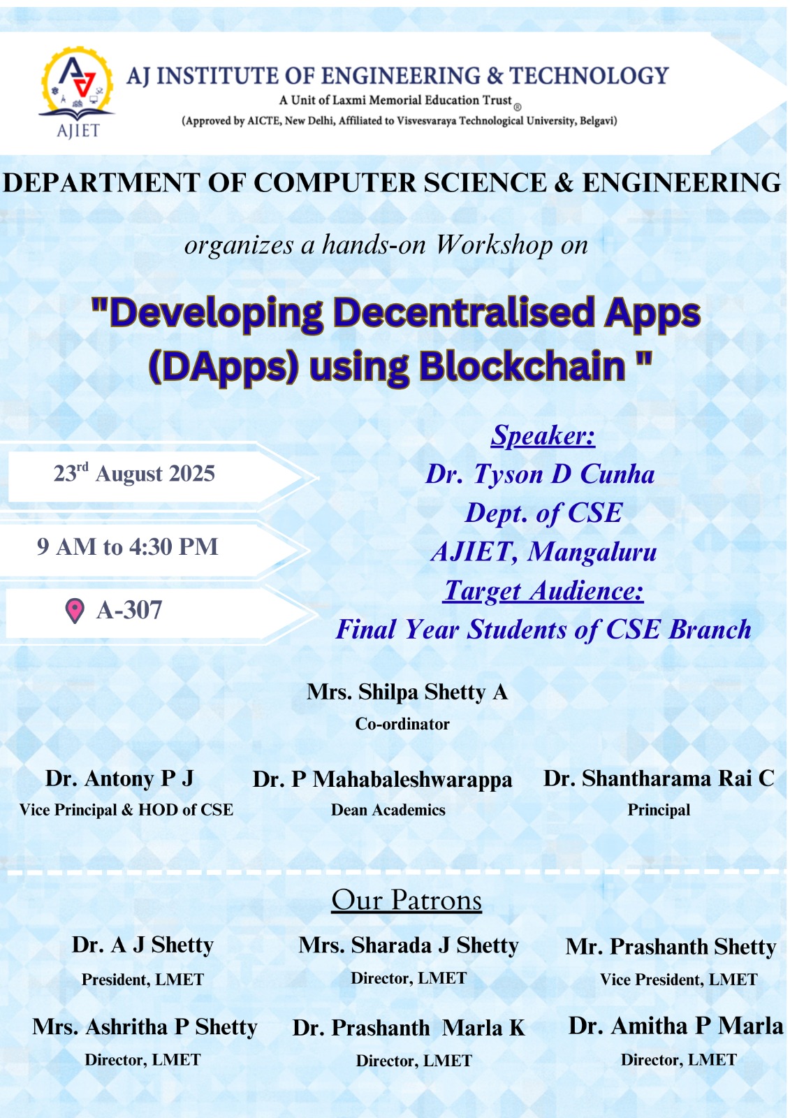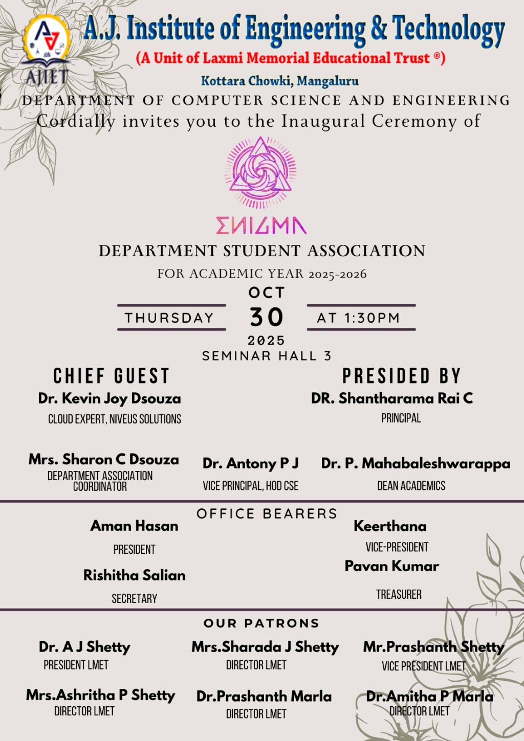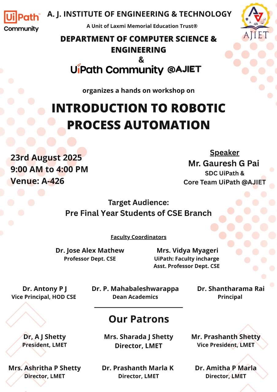 Welcome to the Department of Computer Science and Engineering at A J Institute of Engineering and Technology!