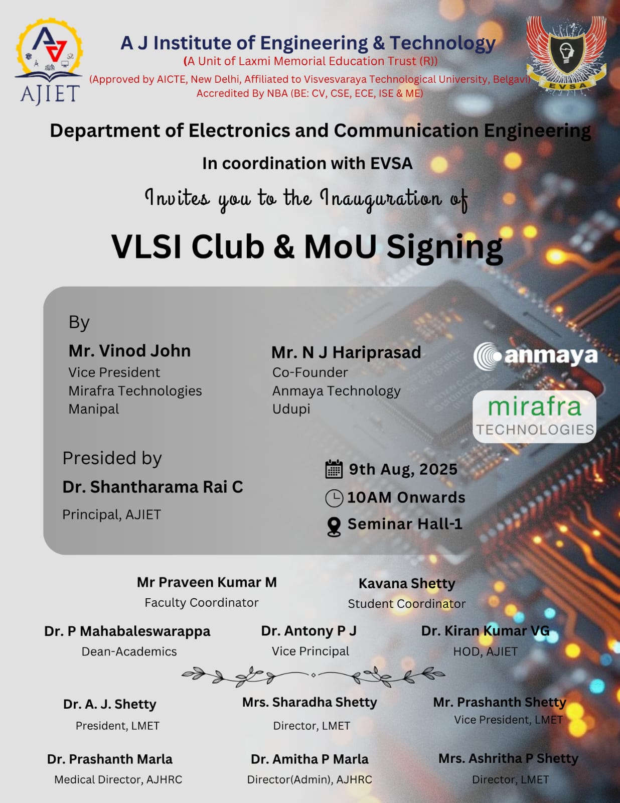 Welcome to Department of Electronics and Communication Engineering, AJIET. The mission of Department of Electronics and Communication Engineering AJIET is to ensure its students successful careers.
