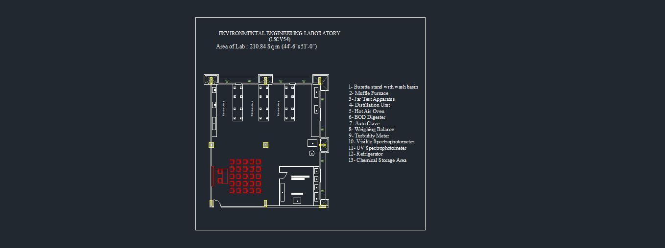 This course will enable students to learn different methods of water & waste water quality, conduct experiments to determine the concentrations of water and waste water ,determine the degree and type of treatment,To understand the environmental significance and application in environmental engineering practice, The lab is equiped with, BOD incubator, COD digestor, Digital weighing balance, Muffle fernance, Spectrophotometer, pH meter, Electrical Conductivity meter etc.the toaal area oflaboratory is 210.54 Sq meter.