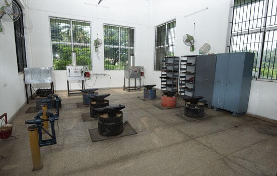 : In Foundry, Forging and Welding lab, the students will be working on various processes involved in Casting and forging operations. The students will learn the art of producing forged models like square rod, L-Nail, square bolt, Hexagonal bolt etc. students will also learn to make mould cavity with use for patterns namely single piece pattern and split piece pattern for casting using moulding sand.students will also be testing the strength of the moulding sand such as tensile strength, compressive strength, mould hardness, core hardness, permeability test, moisture content test etc. In this lab students will also be trained to do arc welding operations making different joints such as lap joint, butt joint, corner joint etc. Lab is provided with proper ventilation, space and sufficient lighting.